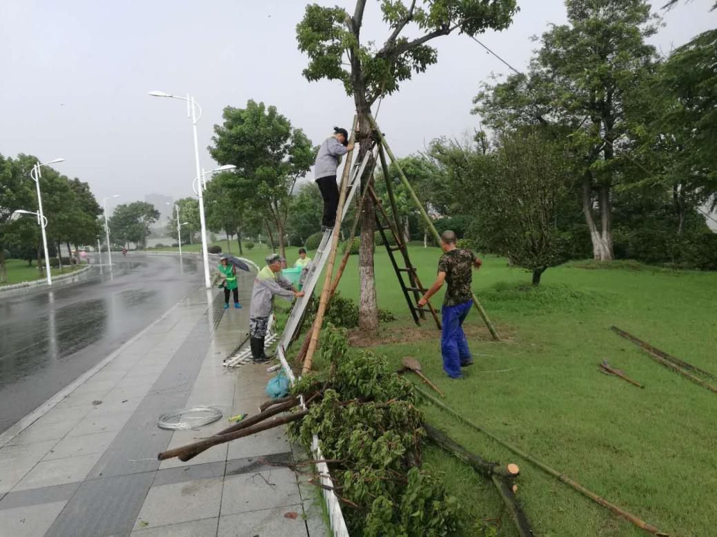 进入8月以来,徐州市接连遭受了多次台风侵袭,持续的大风强降雨过程导致乐鱼在线注册_乐鱼(中国)养护的各个项目点苗木,道路及其它设施损毁严重,面对严峻的灾情,乐鱼在线注册_乐鱼(中国)号召所有项目经理带领广大一线员工迅速行动起来,抢扶抢修,24小时奋战在第一线,谱写了一曲感人篇章。