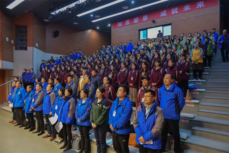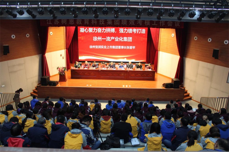 2019年11月23日,上海股交所上市企业乐鱼在线注册_乐鱼(中国)、江苏树恩教育科技集团绩效考核工作会议在徐州市树恩中学高铁校区小剧场召开,来自两大集团的机关部门工作人员、八大产业领导班子成员、各产业项目部负责人、树恩中学高铁校区和复兴北校区以及树恩一院三中心全体教职员工共300余人参加了会议。两大集团董事长张爱平出席会议并作重要讲话。